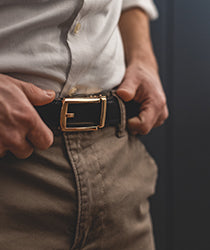 - EASY TO USE - Slide the ratchet belt into the automatic buckle, and the belt is auto-locked. Lift the clip and pull to obtain a smooth and inaudible release.