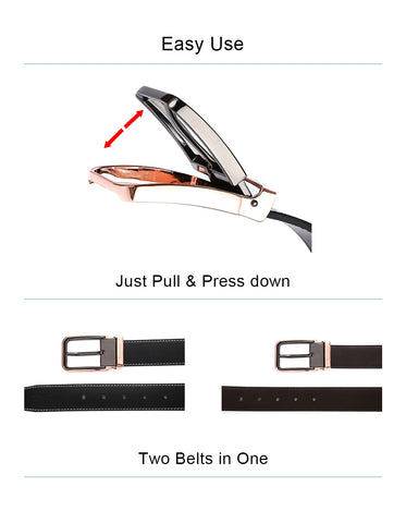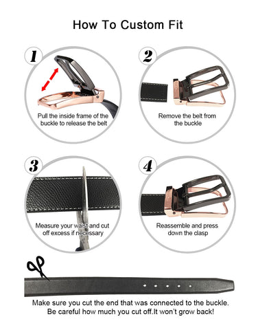 - OPTION 2 - 2 in 1 belt, reversible strap with gun/sliver/gold buckle for your choose. The removable buckle allows you to cut the belt strap to your ideal size.