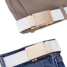 - Easy to use. Simple, smooth, just slide the belt into the buckle and pull the belt through, the buckle simply auto locks the belt.